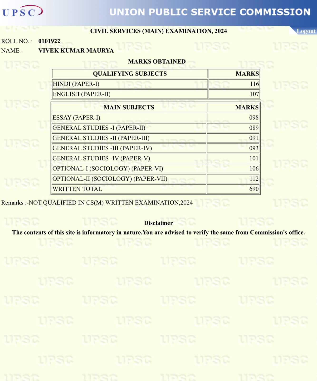 Instead of writing mock papers for the UPSC Main, I was attempting other examinations. Instead of relying on my plan, I was following others' advice. In place of studying hard, I was exploring the city and events. So, now you can guess what the results of all of these were. I got success in none.
